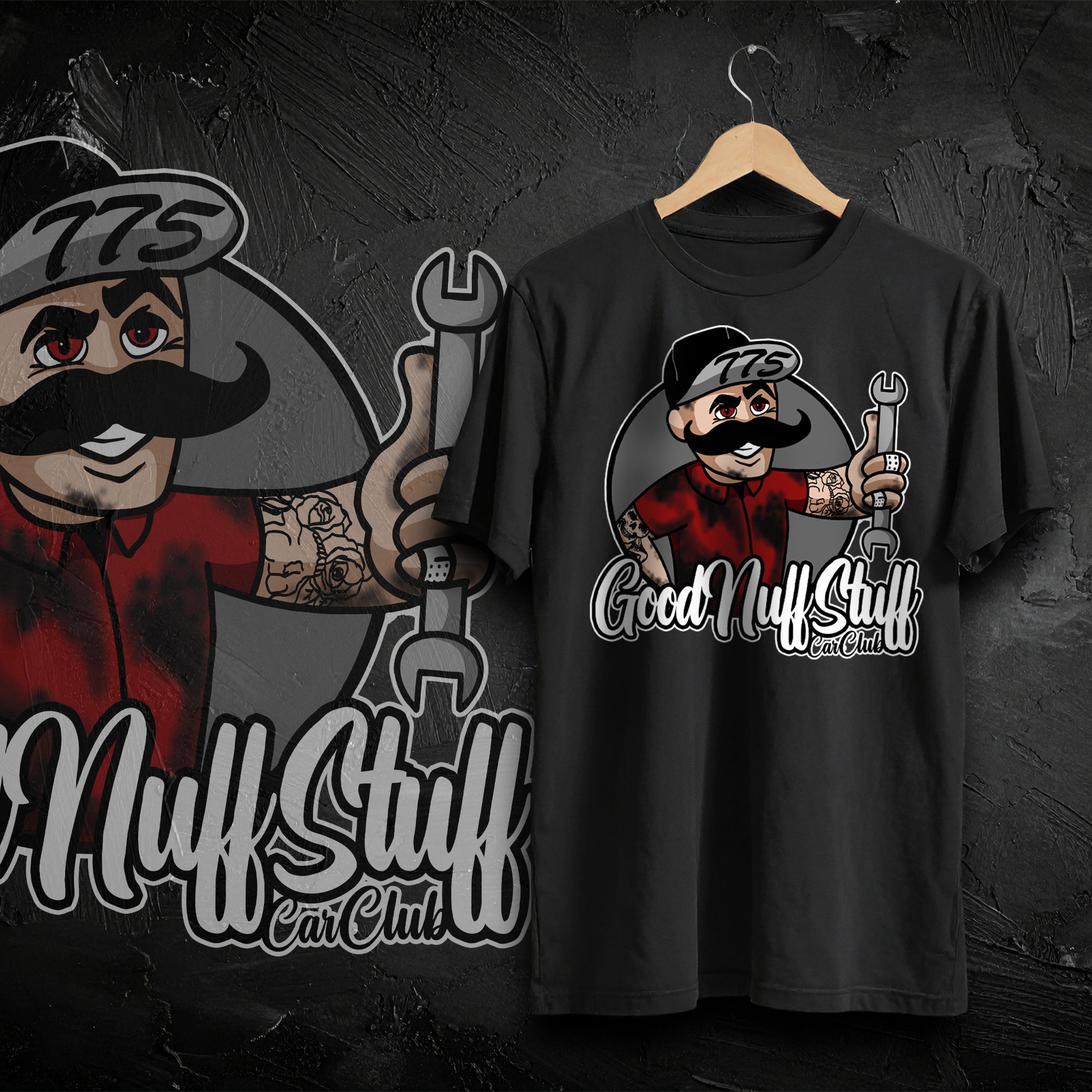 Car club shirt, Good Nuff Stuff tee, Garage shirt, Mechanic shirt, Cartoon car shirt, Hot rod tee, Tattoo mechanic shirt, Wrench life tee, Gearhead apparel, Shop shirt, Custom car shirt, Auto lifestyle tee, Men's garage t-shirt